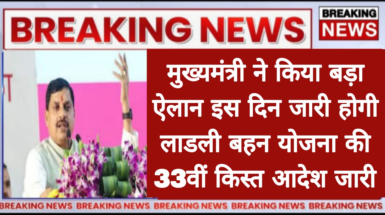 मुख्यमंत्री ने किया बड़ा ऐलान इस दिन जारी होगी लाडली बहन योजना की 33वीं किस्त