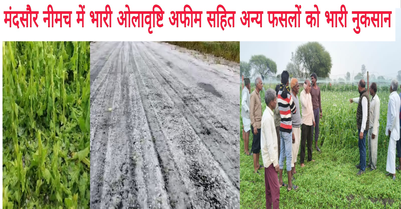 सड़कों पर बर्फ ही बर्फ मंदसौर नीमच में भारी ओलावृष्टि अफीम सहित अन्य फसलों को भारी नुकसान