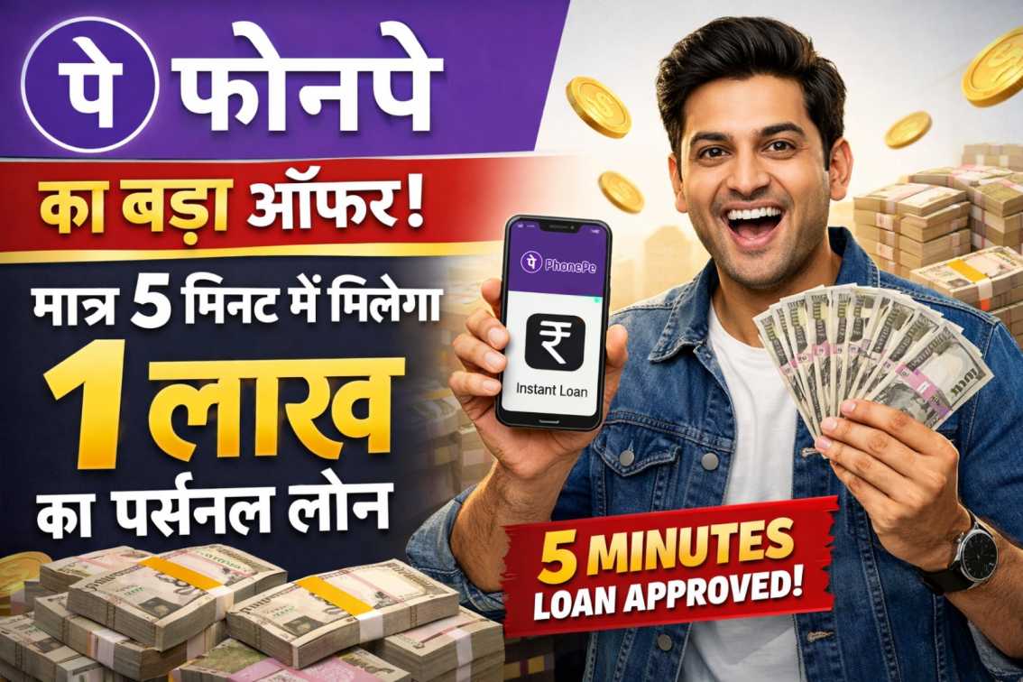 Phone pay instant loan: फोनपे का बड़ा ऑफर, मात्र 5 मिनट में मिलेगा 1लाख का पर्सनल लोन।