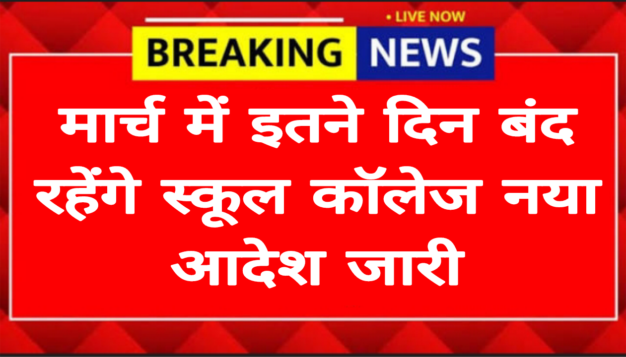 School holidays मार्च में इतने दिन बंद रहेंगे स्कूल कॉलेज नया आदेश जारी देश में मार्च के महीने में इतने दिन स्कूल कॉलेज बंद रहेंगे नया आदेश निकाल कर आ चुका है आज के आर्टिकल में हम जानेंगे इस खबर को विस्तार से तो चलिए शुरू करते हैं 2026 में होलिका दहन 1 मार्च, रविवार को मनाया जाएगा और 2 मार्च, सोमवार को रंगों की होली खेली जाएगी। चूंकि 1 मार्च पहले से ही रविवार है, इसलिए अधिकांश स्कूलों में 2 मार्च को सार्वजनिक अवकाश रहेगा।