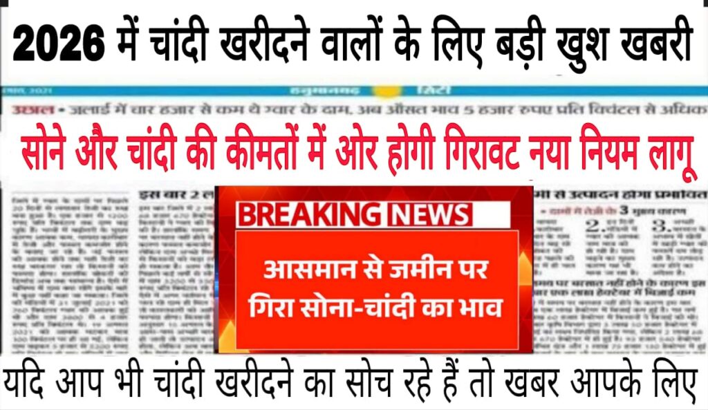 Silver rate चांदी की कीमतों में भारी गिरावट 10 फरवरी से नया नियम लागू सुचना जारी