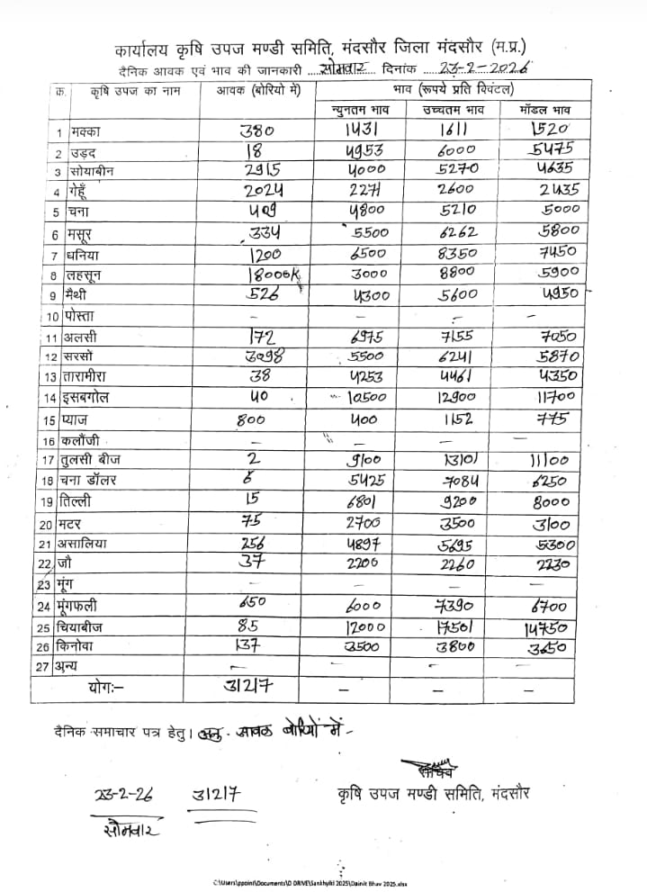 मंदसौर मंडी गेहूं सरसों और सोयाबीन में एक बार फिर तेजी