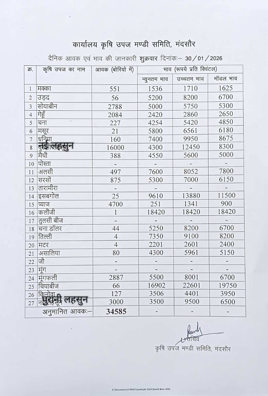 मंदसौर मंडी लहसुन एवं सोयाबीन के भाव में बड़ी गिरावट