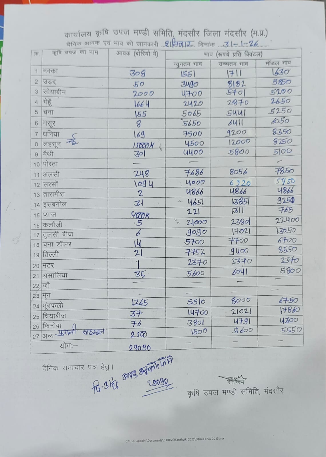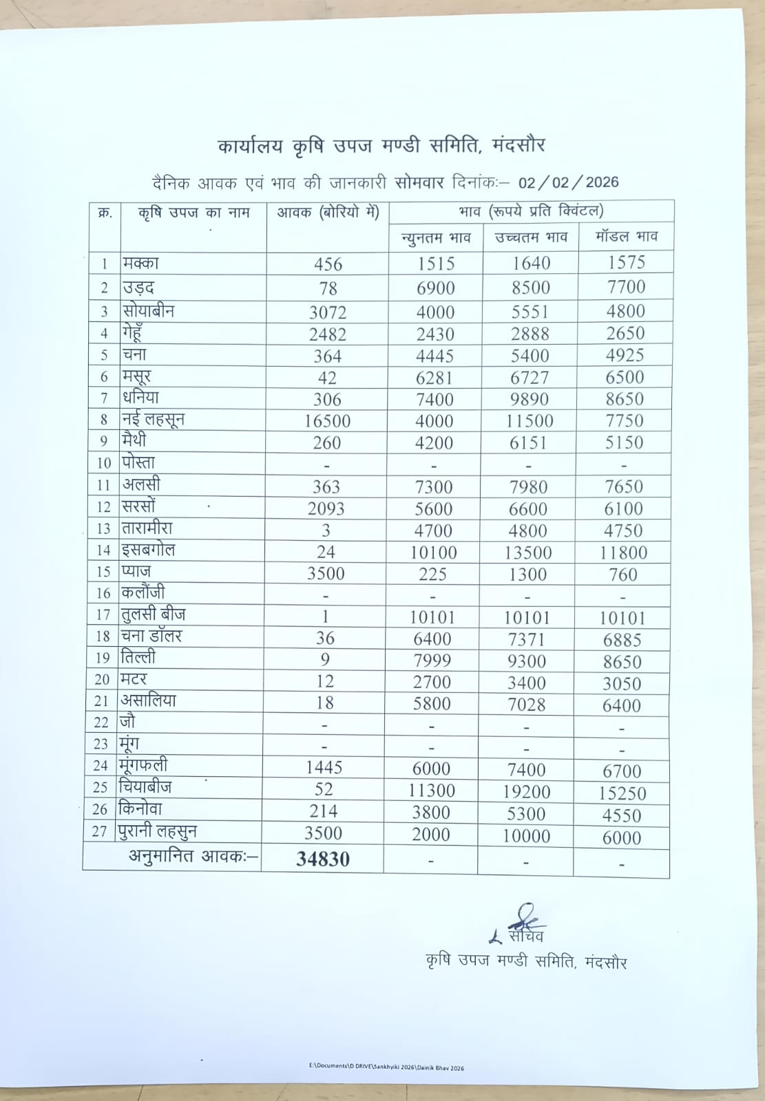 मंदसौर मंडी लहसुन एवं सोयाबीन के भाव में बड़ी गिरावट आज के आर्टिकल में बात करेंगे मंदसौर कृषि उपज मंडी की मंदसौर मंडी 11 फरवरी 2026 आज फसलों के भाव क्या पूछ रहे हैं विस्तार से जानते हैं मक्का 1500 से 1400 सोयाबीन 4000 से 5300 मसूर 5000 से 6000 लहसुन 3000 से 10500 … Read more