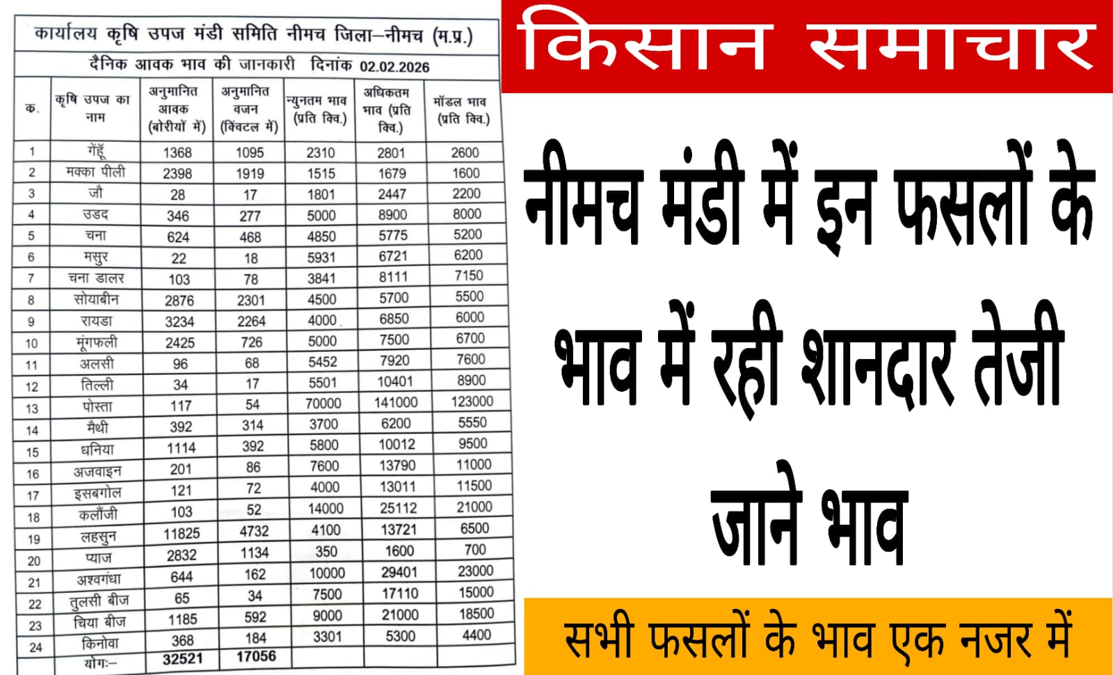 नीमच मंडी इन फसलों के भाव में तेजी जाने एक नजर में